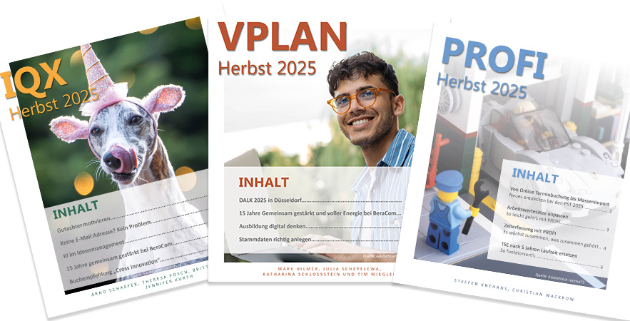 Wenn Sie ein wenig BeraCom-Luft schnuppern möchten, dann lesen Sie auch gerne unsere BeraCom News. So erhalten Sie einen Überblick über die neuesten Entwicklungen bei BeraCom, Berichte über aktuelle Aktivitäten, Veranstaltungen, Schulungen und Projekte.