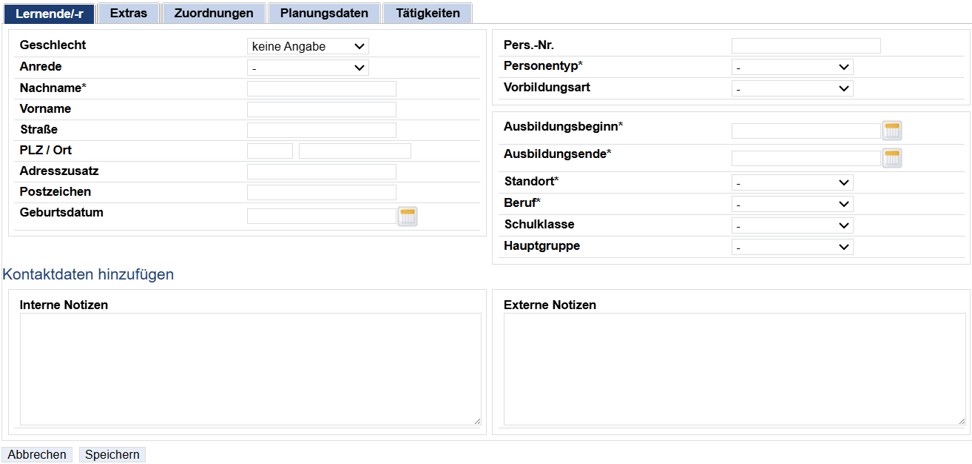 Die Eingabe des Ausbildungsbeginns- und endes in den Stammdaten einer lernenden Person legt auch gleichzeitig fest, wie lange die Lernenden auf VPLAN und ihre eigenen Daten zugreifen können und somit eine Lizenz belegen.